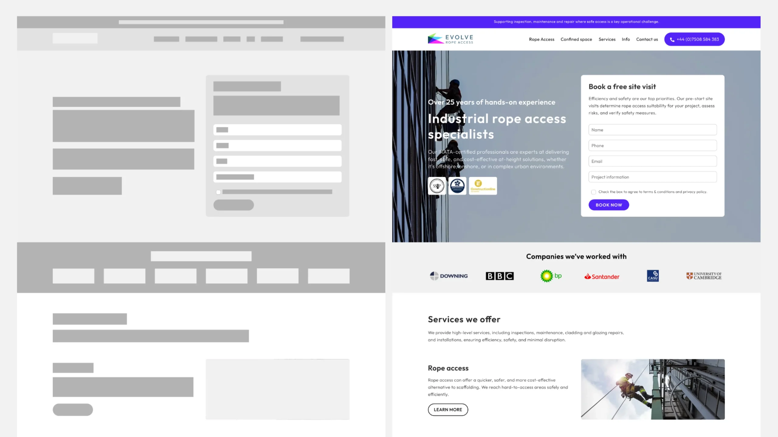 Evolve Rope Access is a UK-based industrial rope access company delivering specialist at-height services across maintenance, inspection, glazing, cladding, cleaning, and lifting operations. Backed by IRATA-certified technicians and over 25 years’ experience, the business is built on safety, precision, and reliability.